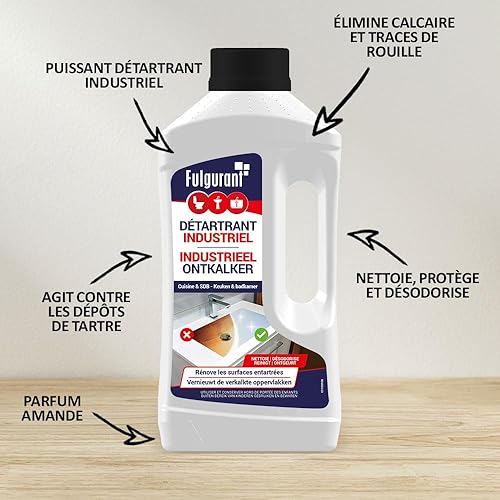 Fulgurant Détartrant Industriel Puissant, Élimine Calcaire, Tartre, Rouille, Désodorise, Douche, Baignoire, Lavabo, 1 L (Lot de 2)