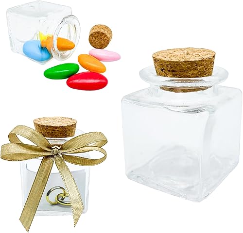 Doni Bomboniere Lot de 50 bocaux 4 x 4 x 4 cm, transparents, personnalisés, bricolage, mariage, baptême, naissance, confirmation, communion