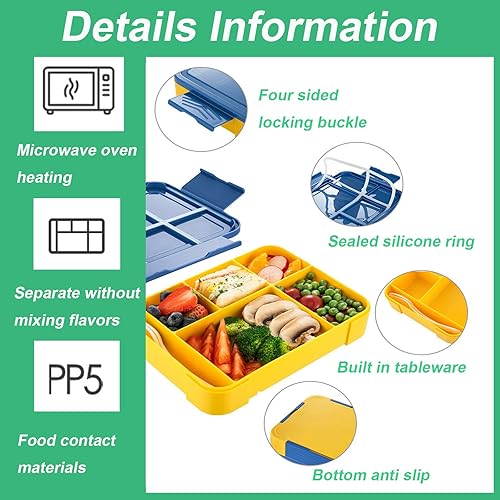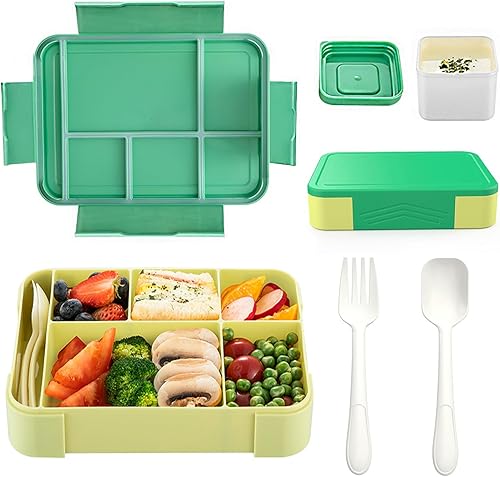 Probuk 1300 ml Lunch Box, Lunch Box Enfant Adulte Boîte, Anti-fuite,Boîte à déjeuner pour Enfants,Boîte à Casse-croûte,avec 5 Compartiments avec Couverts pour enfants, jardin, école