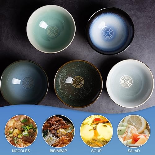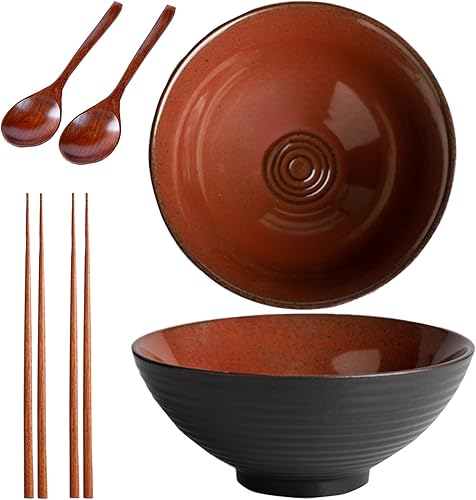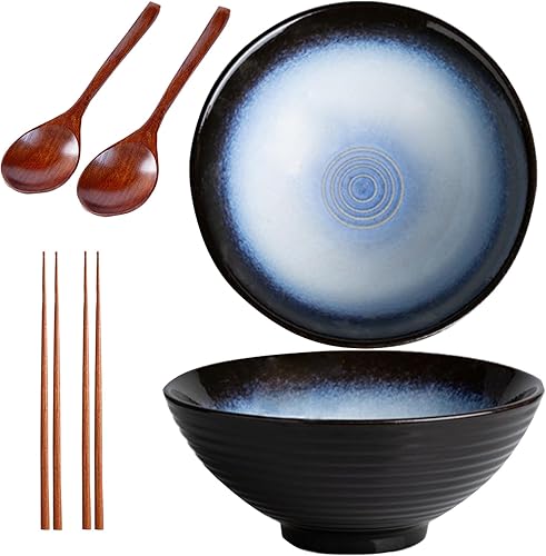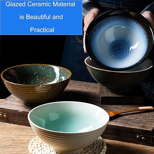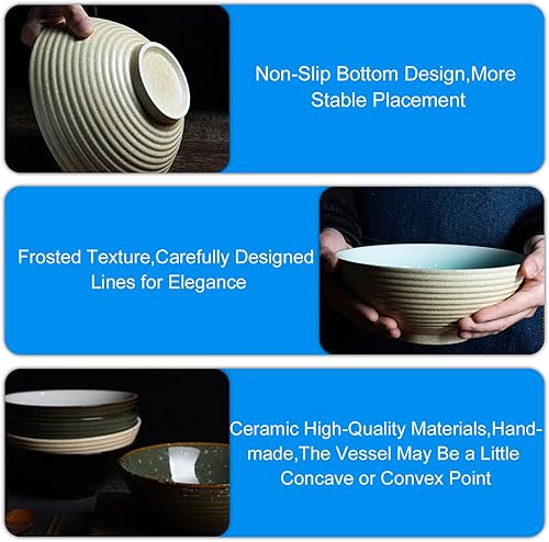 Sightday Lot de 2 bols à ramen (bol à ramen avec cuillères à ramen, baguettes), bol en céramique pour pâtes, collations, soupe, salade, céréales, grand bol(vert vintage)