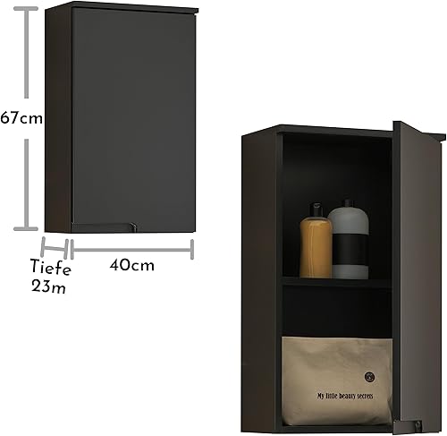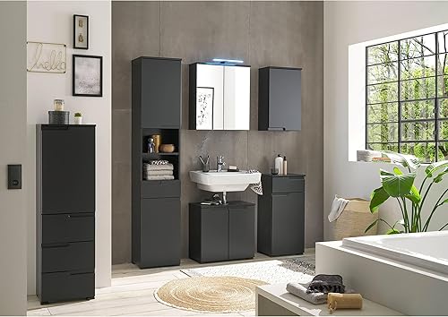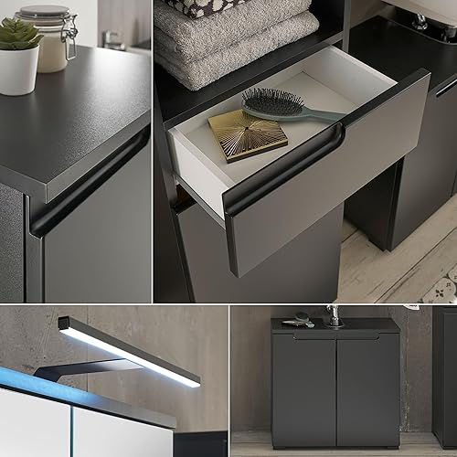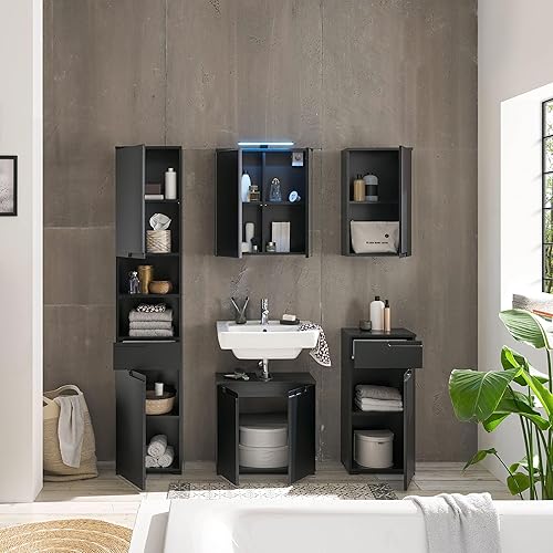 Stella Trading SPICE armoire de salle de bains avec éclairage LED en noir mat - miroir de salle de bains armoire avec beaucoup d'espace de rangement - 60 x 66,5 x 20 cm (L/H/P)