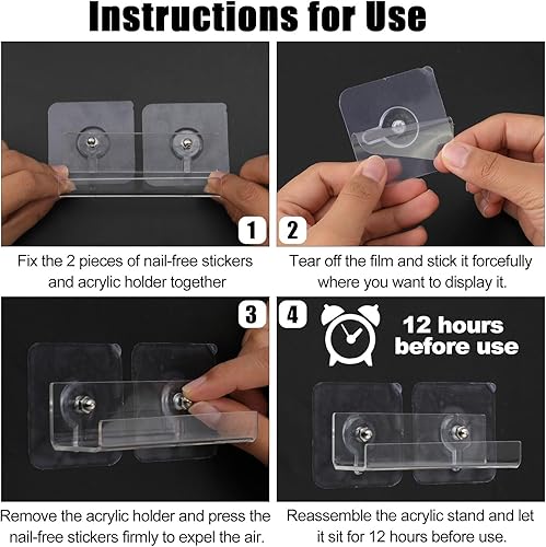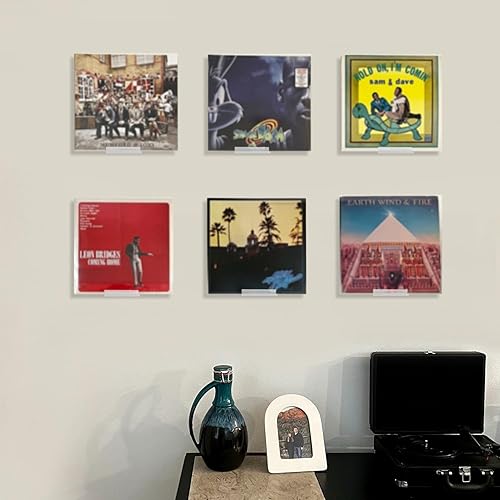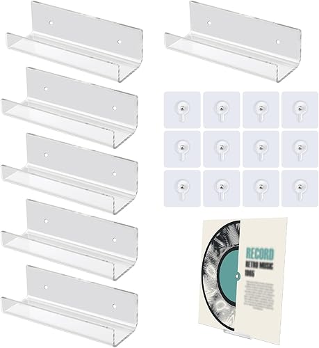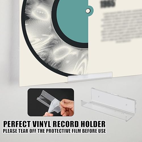 6 Support Mural pour Disque Vinyle, avec 12 Autocollants Vis Sans Clous Support Disque Acrylique Transparent Présentoir pour Couvertures d'Album, Décoration de la Maison, du Bureau