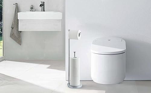 SunnyPoint - Support de Papier Toilette sur Pied avec réserve - Réserve suffisante pour Gros Rouleaux - Chrome