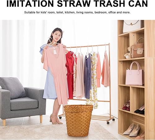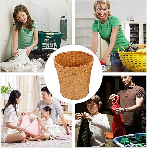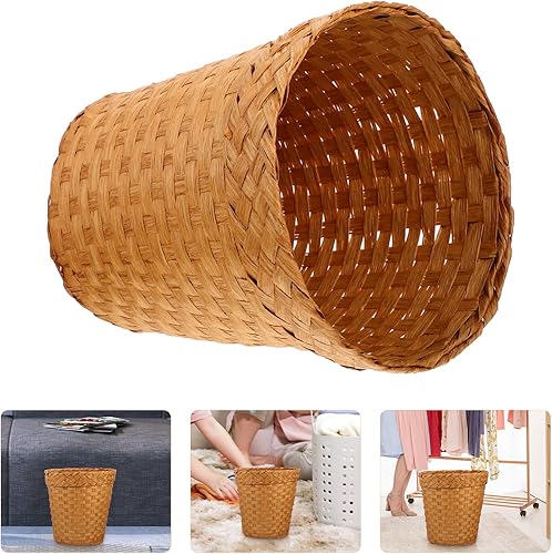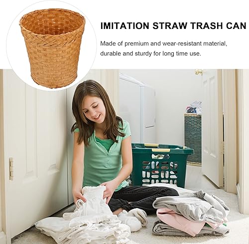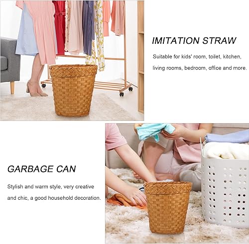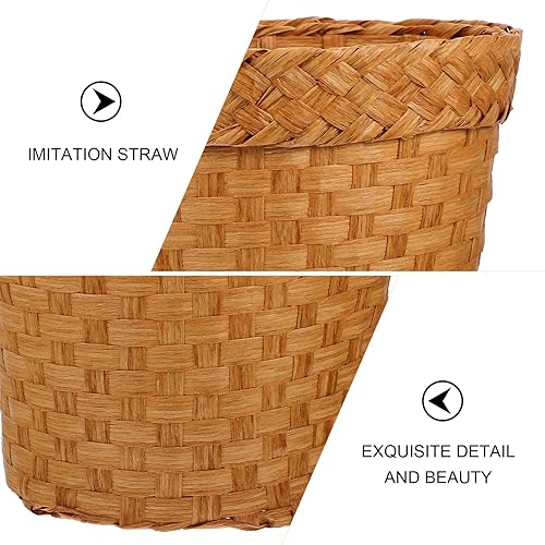 Cabilock Corbeille à Papier Tressée Poubelles De Bureau Poubelle Personnalisée 13 Poubelle De 8 Gallons Panier De Paille Corbeille Poubelle en Osier Rotin Tissé Pot Enfant Bohême Couverture