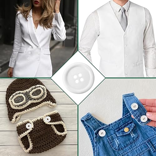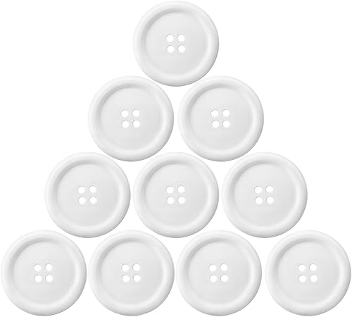 Lot de 10 boutons ronds en résine - 30 mm - Blanc - 4 trous - Pour le bricolage - Avec boîte de rangement - Pour la couture, le bricolage et la décoration