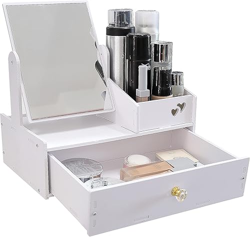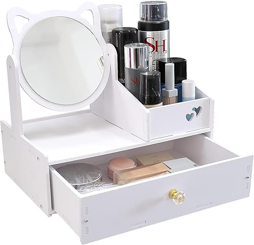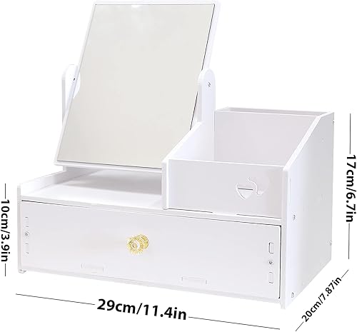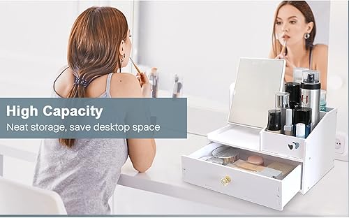 LEcylankEr Rangement Maquillage Organisateur, Organisateur Maquillage Blanc, Boite Rangement Maquillage avec Miroir, Makeup Organizer Tiroir pour Chambre/Salle de Bain (Miroir carré)