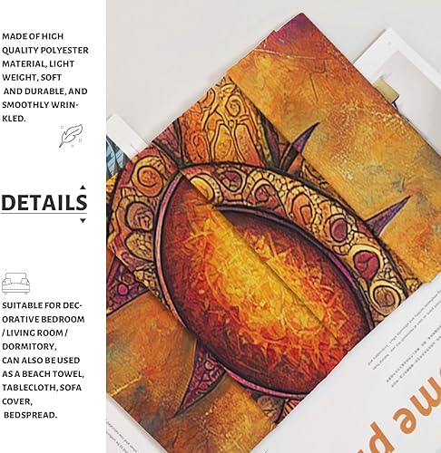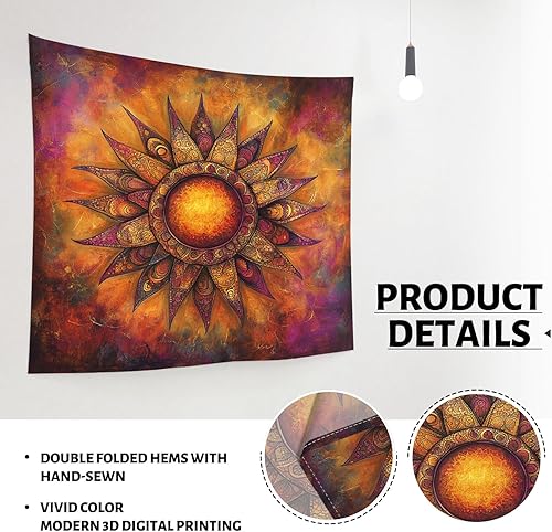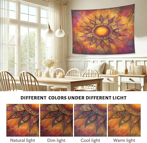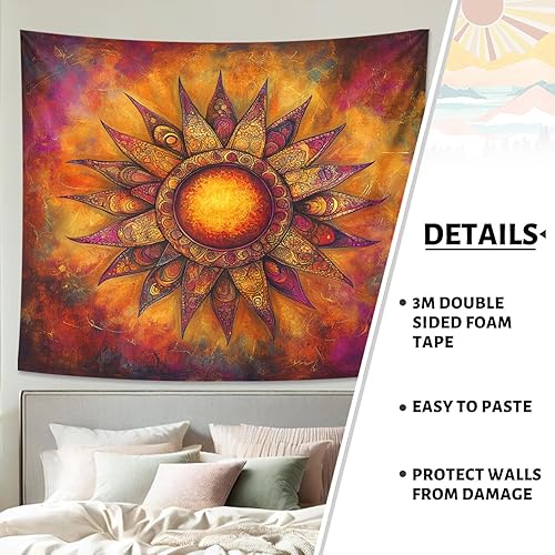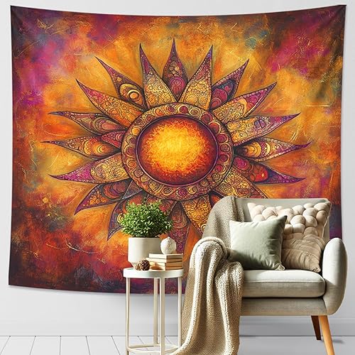 Tapisserie murale colorée bohème mandala orange jaune pour décoration d'intérieur, esthétique pour salon, chambre à coucher, style artistique 152,4 x 203,2 cm