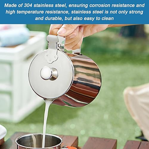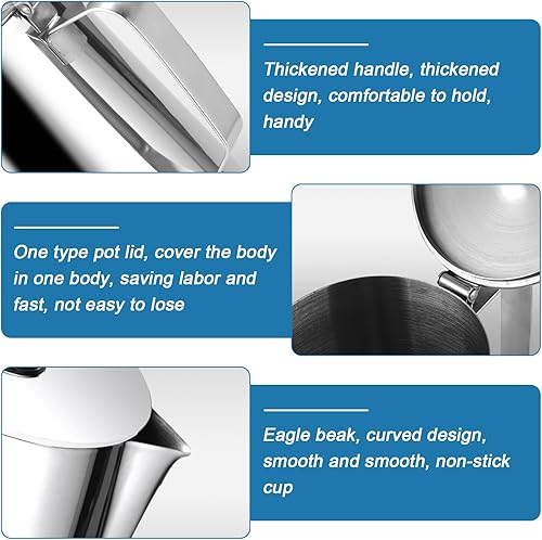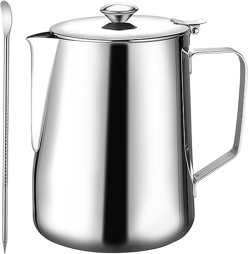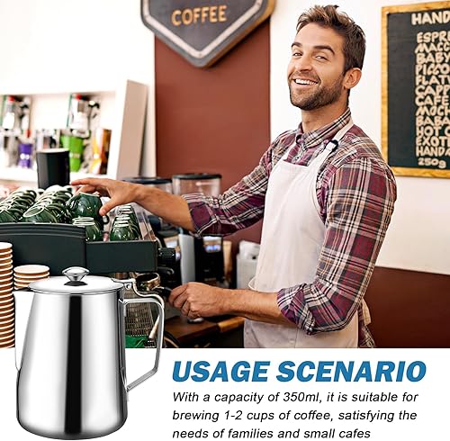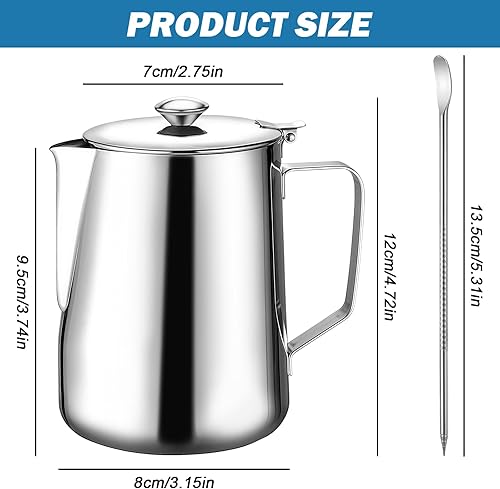 Sporgo Pot à lait de 350 ml avec couvercle : pot à lait en acier inoxydable 350 ml Pichet à mousser portable, mousseur à lait, pot à expresso, pot à mousse de lait pour cappuccino, latte et expresso