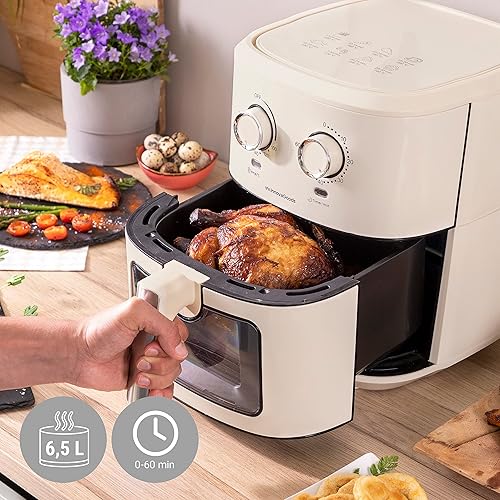 InnovaGoods® air fryer Vintage 6,5L, friteuse sans huile 1700W con +100 ricette in FR friteuse electrique avec fenêtre, panier antiadhésif, minuterie et flux d'air à 360° friteuse pour 4-6 personnes.