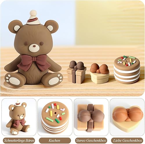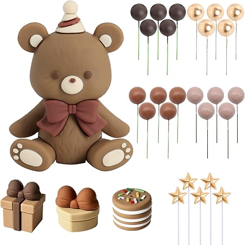 Scettar Lot de 29 décorations de gâteau en forme d'ours en peluche pour baptême, garçon et fille de 1 an, décoration de gâteau pour anniversaire, fête, mariage, fête prénatale, marron foncé