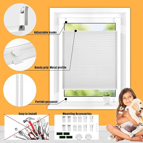Stores Store Plissé sur Mesure 50 x 110 cm translucide, Occultant et Isolant, Tissu Polyester, Store Plissés en Papier Montage Simple et Rapide pour fenêtre, Stores, fenêtres, Bleu
