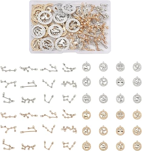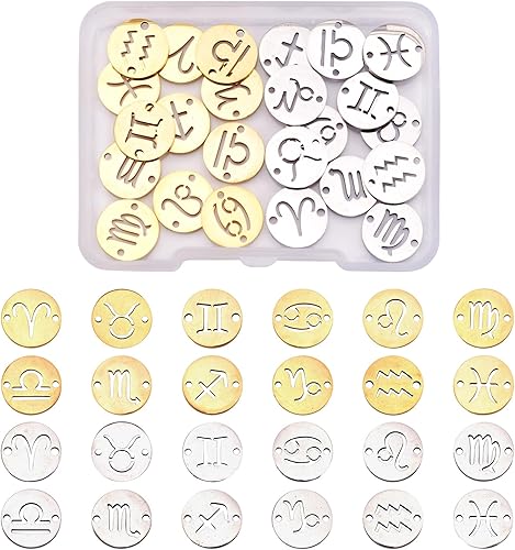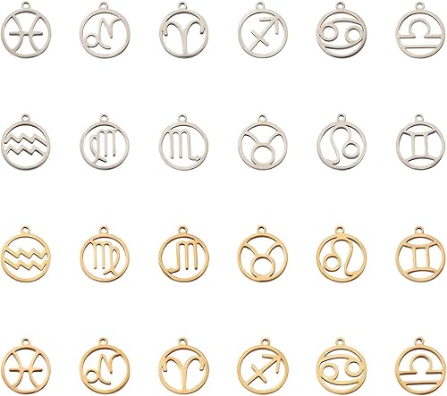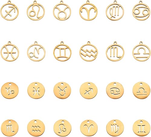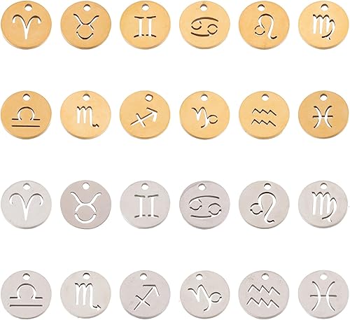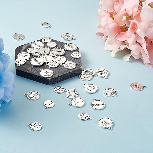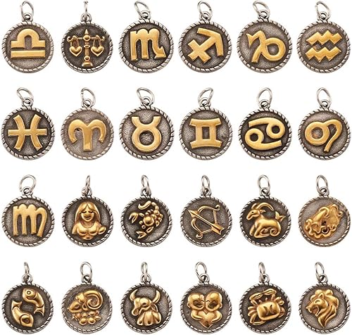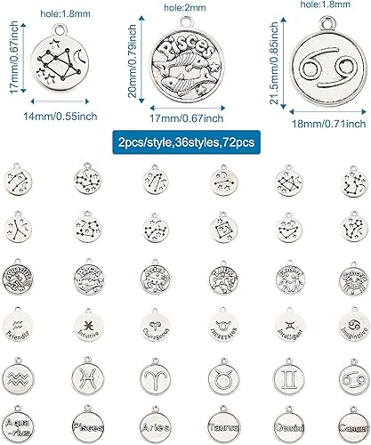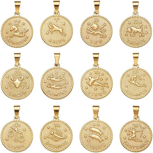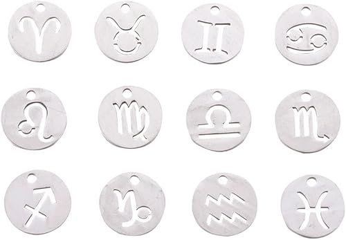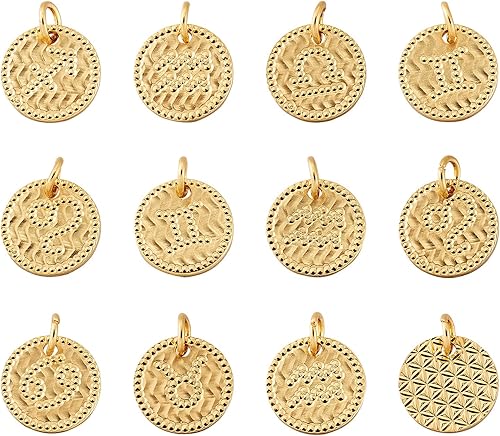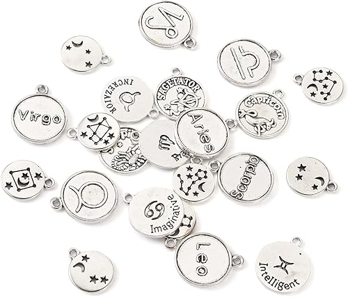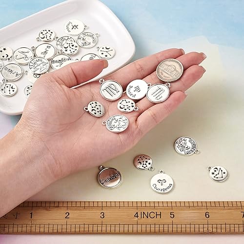PandaHall Breloques rondes et plates avec signe du zodiaque douze pendentifs constellations
