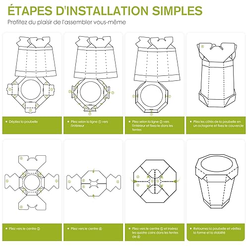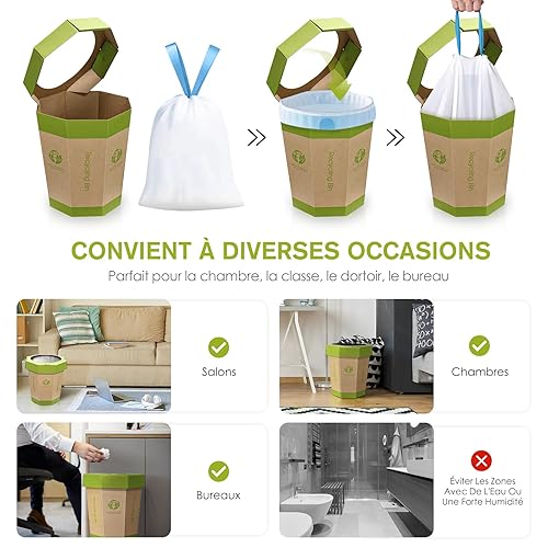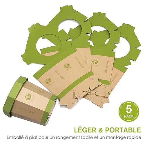 5-Pack Poubelles en Carton (12L) Réutilisables, Pliables, Recyclables, Sans Plastique - Petites Corbeille Papier & Toilettes d'Urgence pour Enfants - Pour Bureau, Bureau Enfant, Chambre (Garçon/Fille)