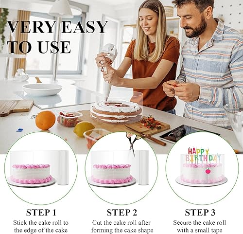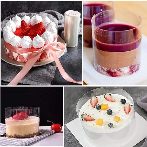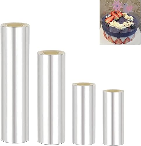 Kiswleon 4 Rodoide Transparent Patisserie(20 cm + 15 cm + 10 cm + 8 cm) x 10 m - Pour Décoration De Gâteau Au chocolat, Film Protecteur Pour Les Bordures De Gâteaux,Gâteau en Mousse, Dessert