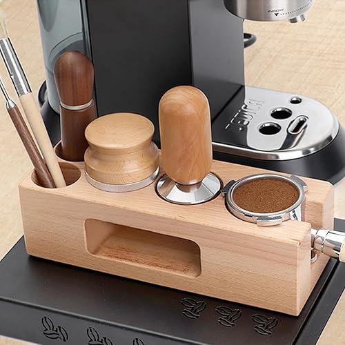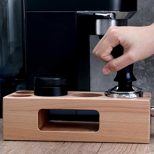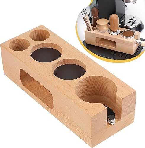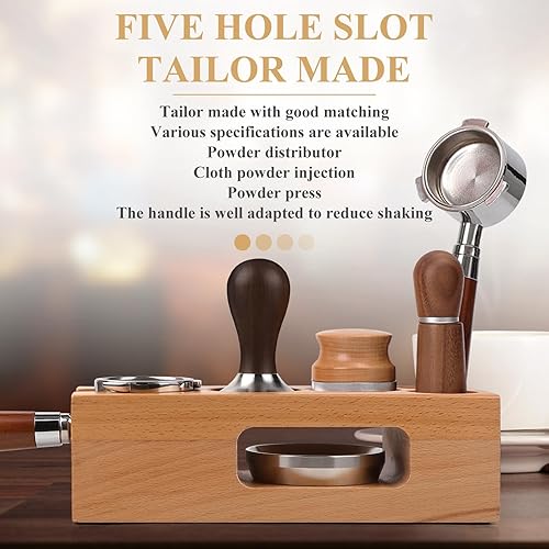 EFUTURETIME Café Tamper Station 58mm, Station de Bourrage de Café Réglable en Bois 5 Trous, Espresso Tamper Station pour le Stockage des Accessoires de Café