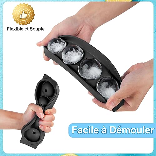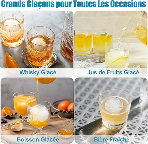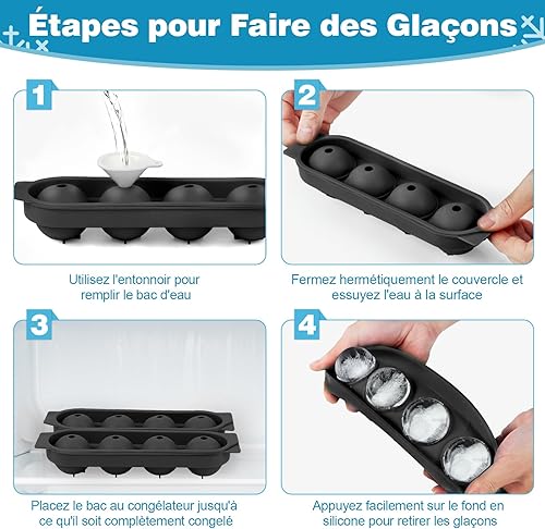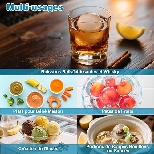 Bac a Glacon Silicone, 2 Pièces 4x Glacons Moule, 4.5cm Rond Bac à Glacons avec Couvercle Ice Cube Tray Moule Glacon Silicone pour Bière Cocktail Whisky Fruits Nourriture pour Bébés - Bleu