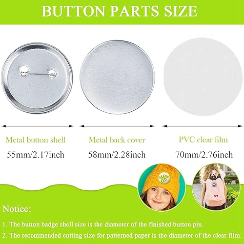 Torribaly Lot de 100 badges ronds en métal de 58 mm - Avec coques en métal - Film transparent - Pièces rondes pour cadeaux et événements