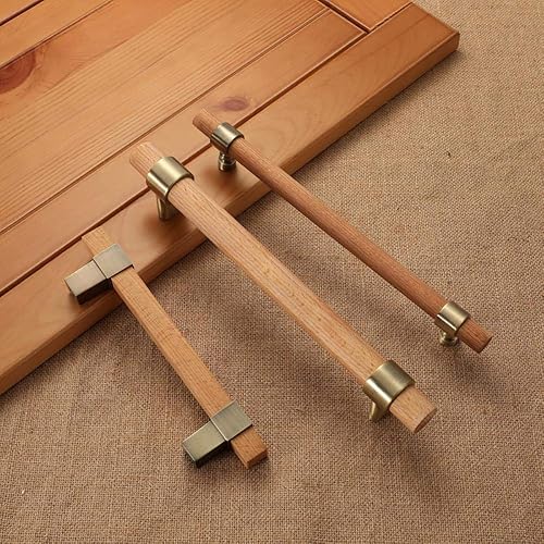Poignées en Bois pour Meubles Bronze dans Les poignées d'armoire et tiroir de Portes de Cuisine Noir Moderne Enfants Boutons réglables en Or 128mm 160mm, A Bronze Polishing, Trou à Trou 192mm