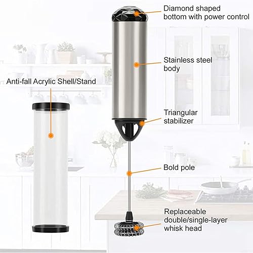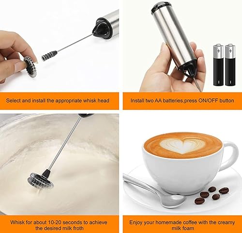 HEIBTENY Mousseur à lait électrique, baguette de mousseur à lait électrique, mini mixeur à boissons, fouet à café pour latte, thé matcha, cappuccino