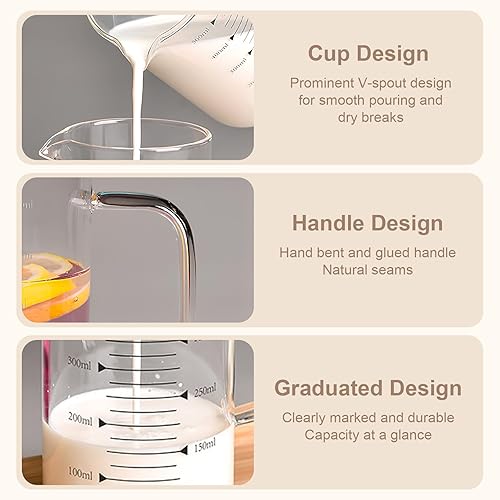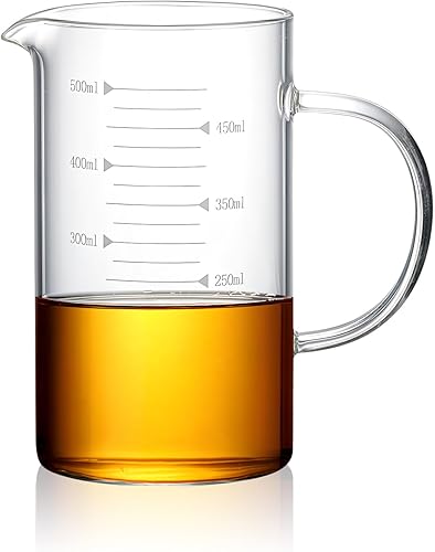 500 ml Bécher en Verre, Verre Borosilicaté Gradué, Bécher de Laboratoire à Bec Verseurl,Avec poignée Pour cuisine ou restaurant