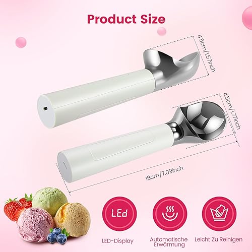 Cuillère à glace électrique chauffante, en acier inoxydable, cuillère à glace rechargeable, avec affichage LED, IP67