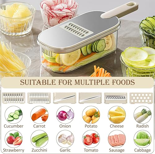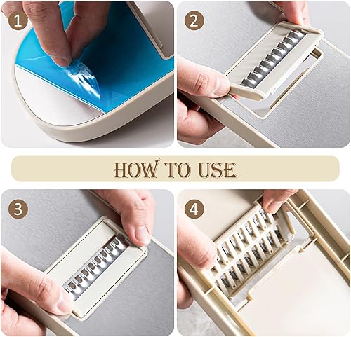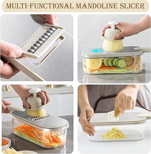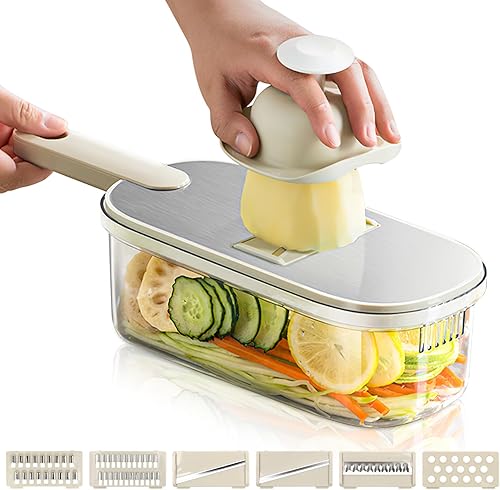 Mandoline Cuisine Coupe Legume Multifonctions, Mandoline pour Légumes Professionnelle en Acier Inoxydable, Tranche de Légumes Manuelle avec 6 Lames Réglable et Protection Exclusive de la Main