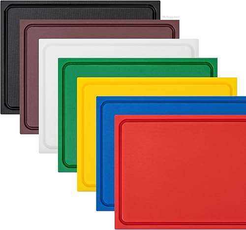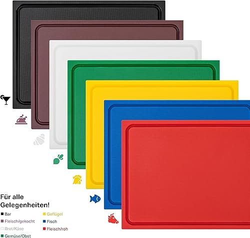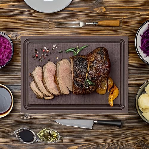 MUVELL Planche à découper en plastique PE-HD Marron, 45x30x2 cm, ECOline passe au lave-vaisselle, extra épaisse, n'abîme pas les couteaux | Planche à découper pour viande rôtie HACCP