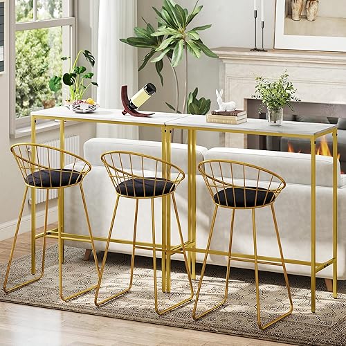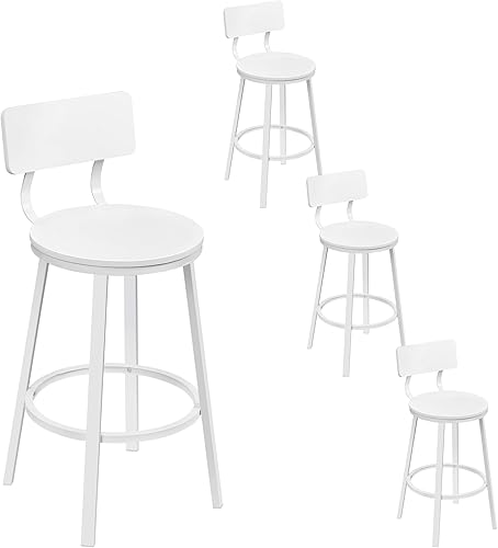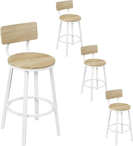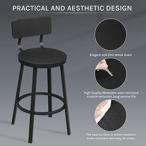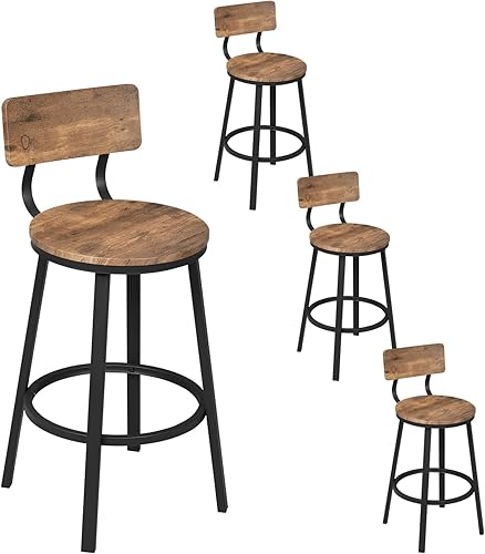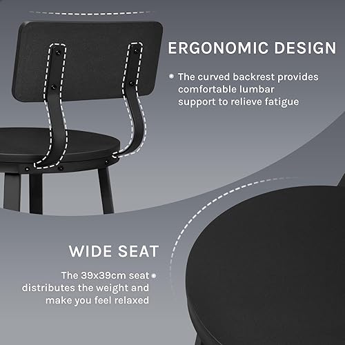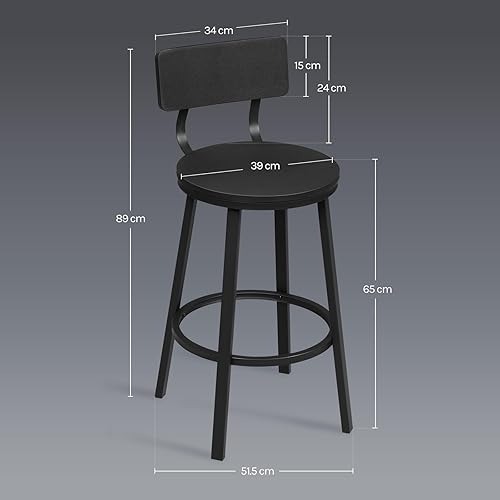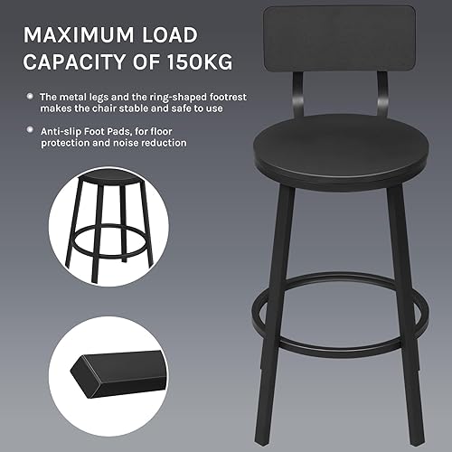 WOLTU Tabouret de Bar Lot de 4, Chaise Haute Cuisine, Chaise de Bar, avec Repose-Pieds et Dossier, en Métal et MDF, Noir, BH431sz-4