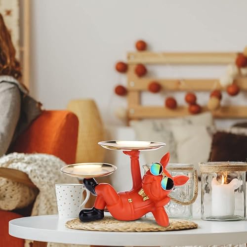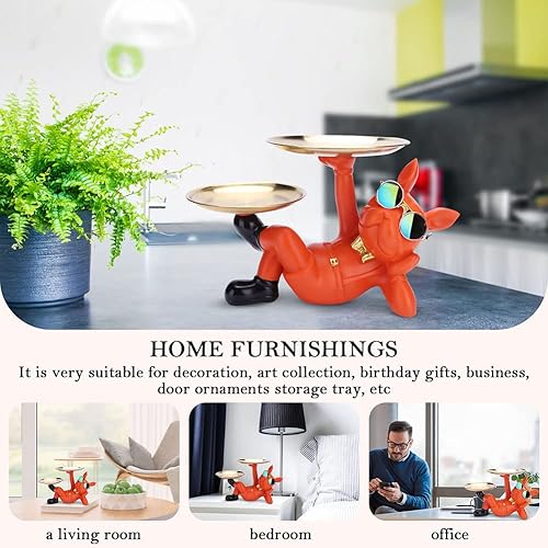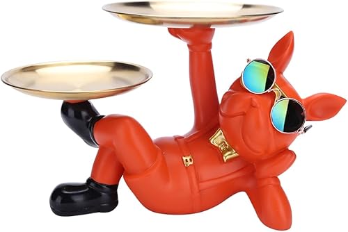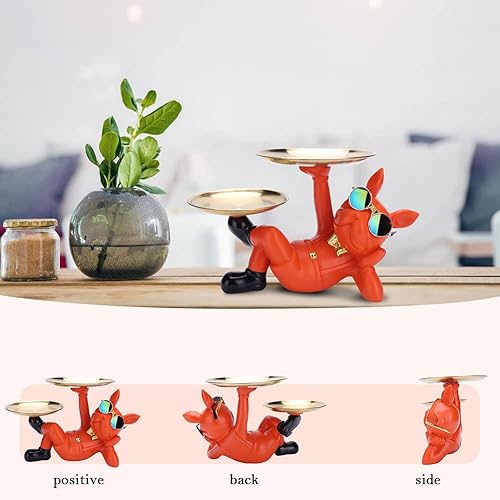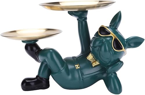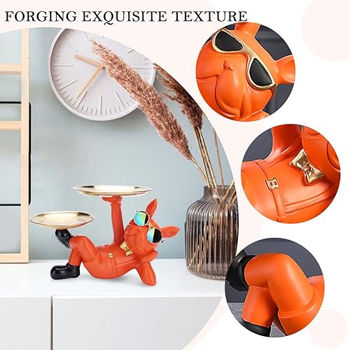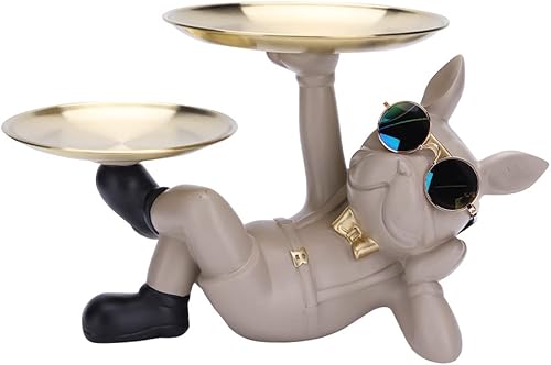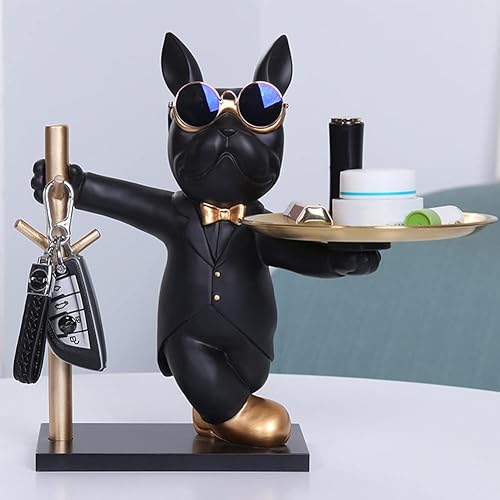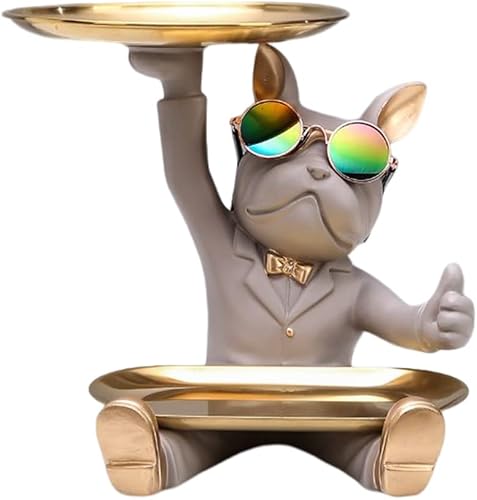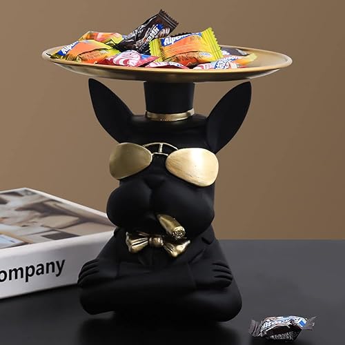 Azazaza Sculpture de rangement Bulldog en résine, plateau de rangement en forme de bouledogue cool, plateau de rangement pour clés, snack, figurine d'art moderne, décoration de bureau