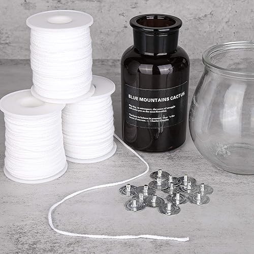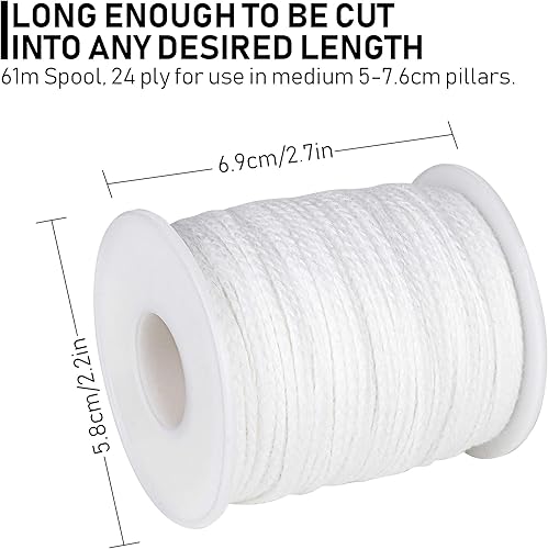 Mitening 200 Pieds Meche de Bougie, Mèche de Remplacement en Coton Mèche Tressée en Coton Mèche de Lampe à Huile Ronde Mèche de Bougie pour Lampes à Huile et Bougies, DIY Fabrication de Bougies à Main
