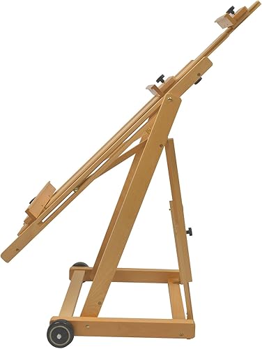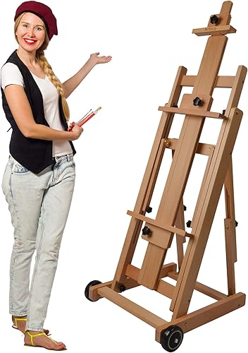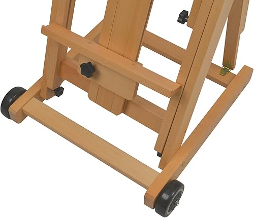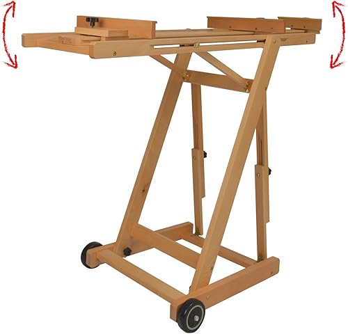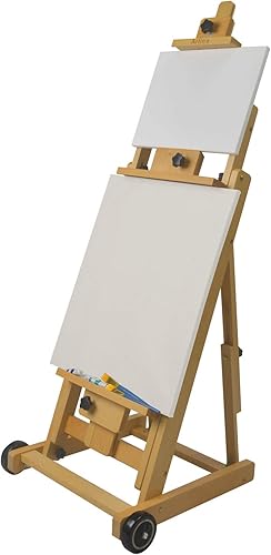 Artina Chevalet Atelier Peinture Bordeaux – Chevalet en Bois de Hêtre avec Support pour 2 Toiles Inclinaison & Hauteur Réglable, 2 Roulettes – Grand Chevalet Stable et Robuste