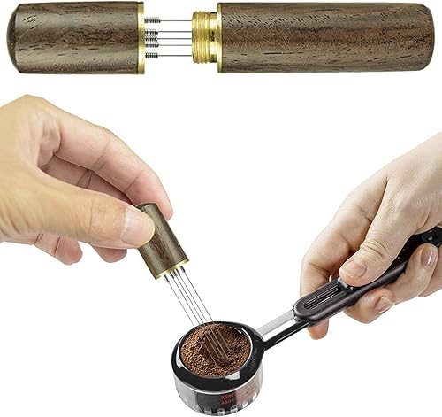 WEITING Agitateur à café - Outil d'café Type Aiguille en Acier Inoxydable | Outil Distributeur Poudre avec Manche en Bois Naturel, Accessoires café