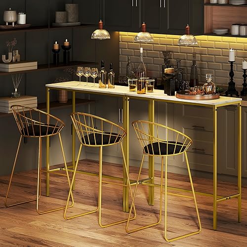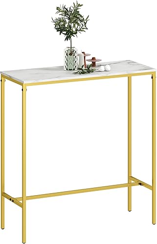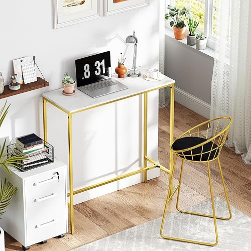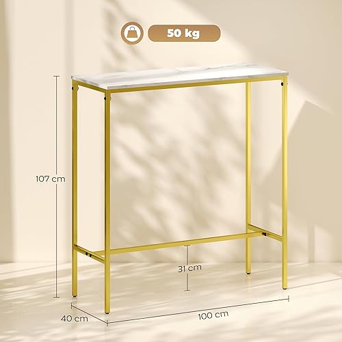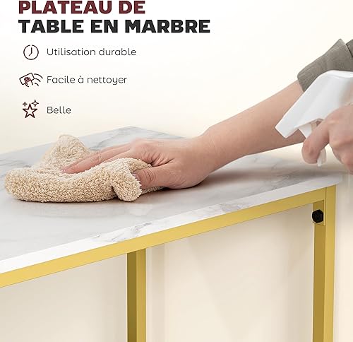HOMCOM Table de Bar Mange-Debout Table Haute de Cuisine rectangulaire avec Plateau Aspect Effet marbre et Cadre en Acier, pour Salle à Manger et Cuisine, 100 x 40 x 107 cm, doré