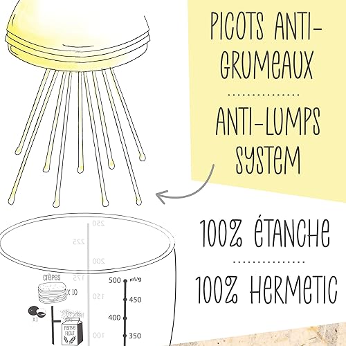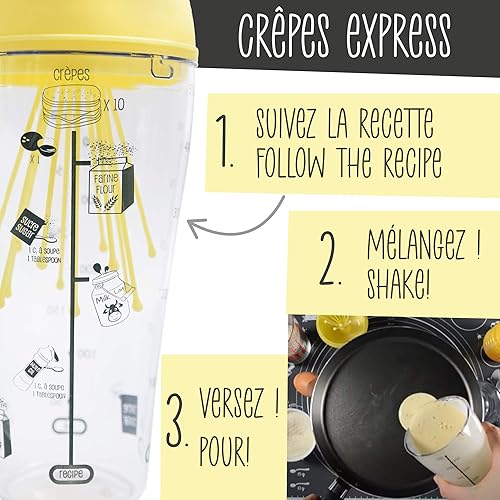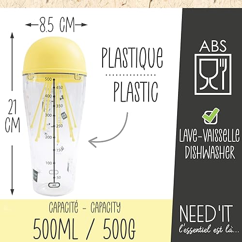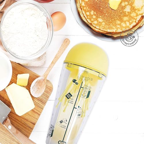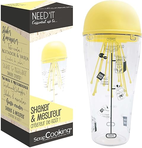 SCRAP COOKING ScrapCooking - Shaker & Mesureur Need’it - Verre Doseur Gradué Pâte à Crêpes, Gaufres, Pancakes, Omelettes - en Plastique - 500ml - Jaune - 5251