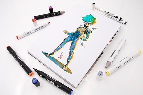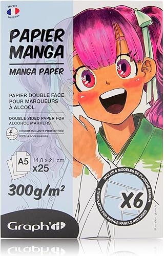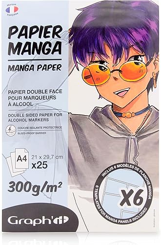 Graph'it - Bloc Manga - Format A4 21 x 29,7 cm - 300 gr - 25 Feuilles Layout Extra Blanc Détachables + 6 Calques - Compatibles avec les Marqueurs à l’Alcool Graph’it et Graph’it Brush