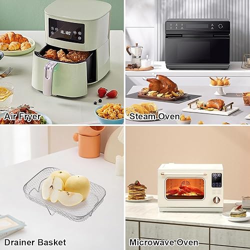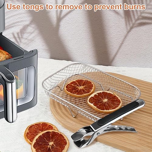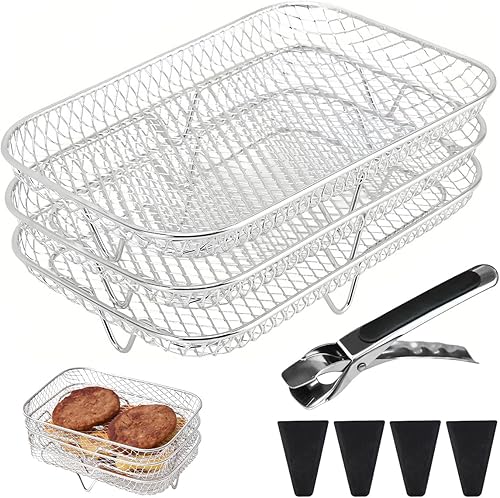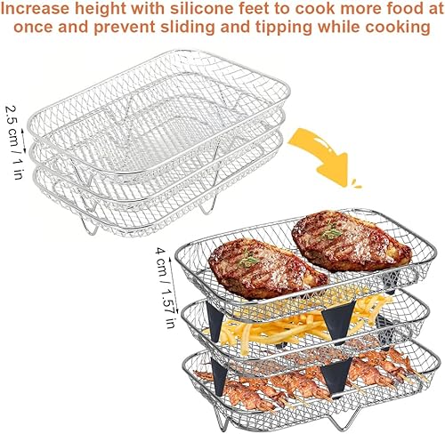 Lot de 3 Support pour Friteuse à Air,19 x 13 x 4,5 cm Airryer Oanier en Acier Inoxydable,Grille de Friteuse à 3 Couches avec Pinces anti-brûlure,Fryer Déshydrator Rack,Air Fryer Rack
