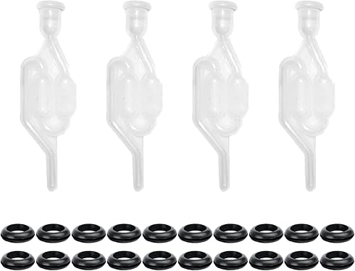 ASFINS Airlock Fermentation, 4pcs Bondes de Fermentation et 20 Pièces Anneaux en Silicone, pour la Conservation, lInfusion, la Vinification, la Fermentation du Choucroute et du Kimchi, 10 mm