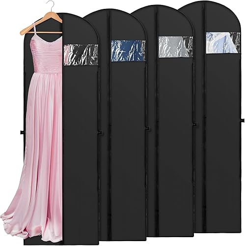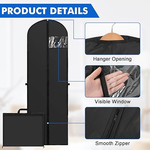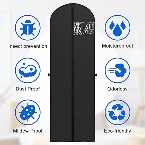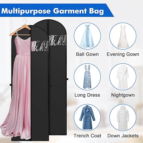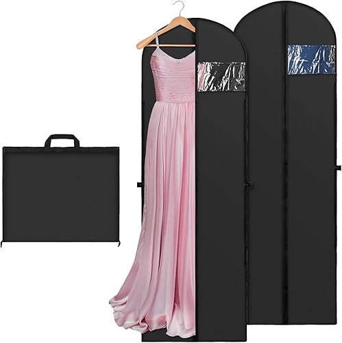 Yimomoyi 2Pcs Housse Robe de Mariée 60x180cm Housse Vetements à Suspendre avec Poignée, housse costume homme housses de protection anti-poussière avec fermeture éclair, Noir