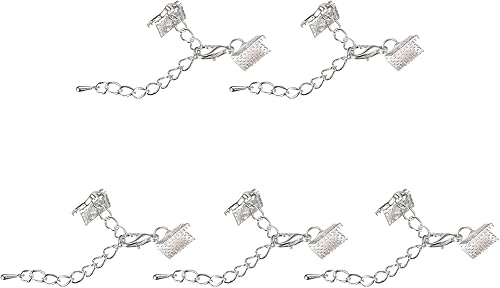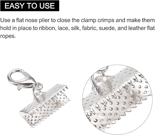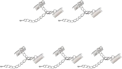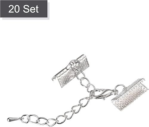 sourcing map Lot de 20 embouts de serrage pour ruban avec fermoirs mousquetons et chaîne d'extension, fermoirs de cordon de 16 mm pour loisirs créatifs, ton argenté
