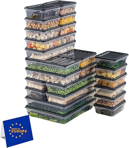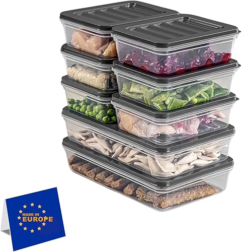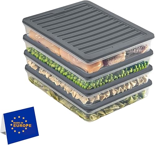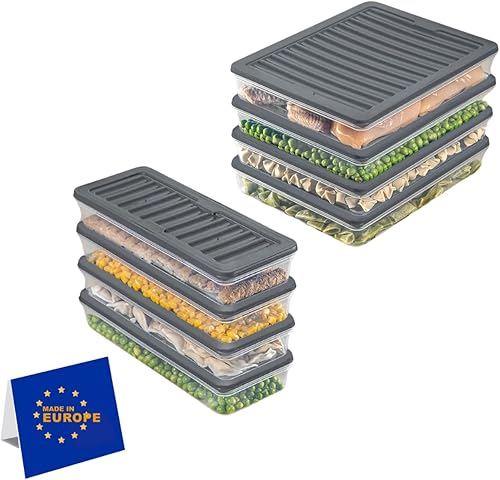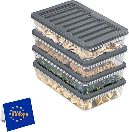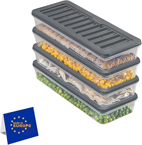 IDOBY Lot de 4 boîtes de conservation empilables, pour congélateur et réfrigérateur, avec couvercle, résistantes au gel jusqu'à -25 °C, réutilisables, pour charcuterie (4 x 2400)