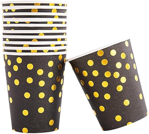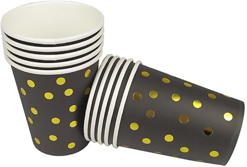 Lot de 60 gobelets en Carton à Pois dorés pour fête, Boissons, Salle de Bain, Mariage, fête prénatale, Noir