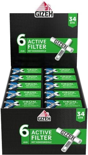 Gizeh Raucherbedarf GmbH Gizeh Black Active 20225 Lot de 10 boîtes de 34 filtres en papier 6 mm