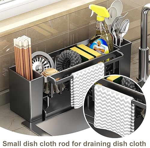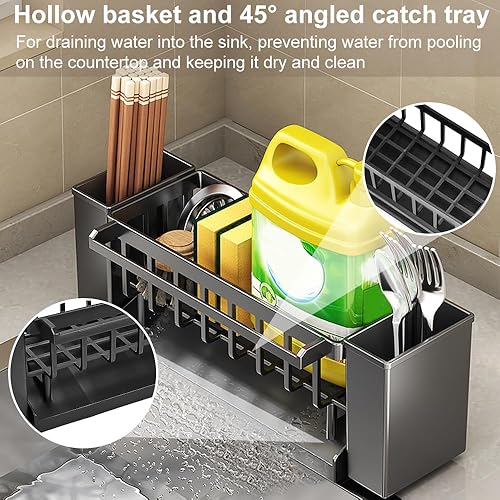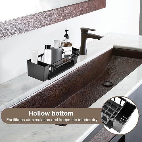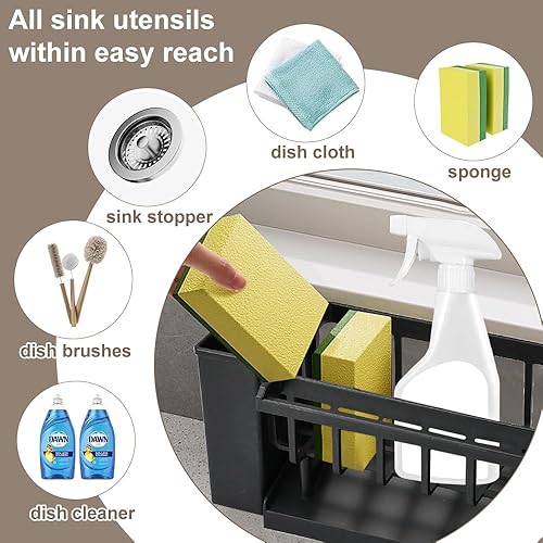 XRPRPX Organisateur Evier Cuisine ABS Porte Éponge Évier Cuisine avec Trous de Drainage Organiseur d'Évier en Plastique Noir Organisateur Évier Antidérapant Porte-éponge pour Vaisselle, Brosse, Savon