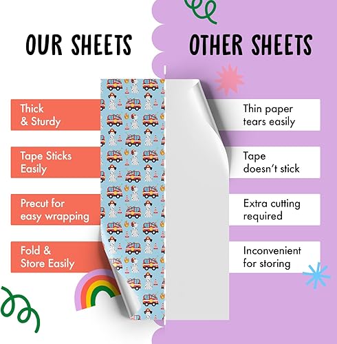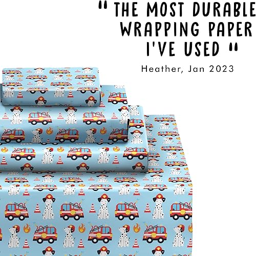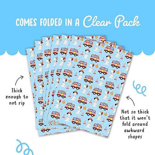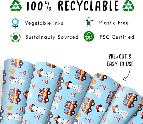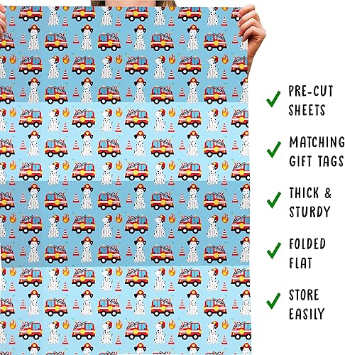 Papier cadeau camion de pompier – 6 feuilles de papier cadeau avec étiquettes – Chien – Papier cadeau d'anniversaire pour garçon – Livré avec autocollants – Par Central 23
