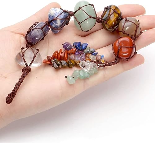 Ornement Voiture Feng Shui Pierres Précieuses, 7 Cristaux Ornements Suspendu, Sept Chakras Couleur Tissé la Main, Chakra Pierres Précieuses Cristaux Cristal Reiki, Pendentif,Voiture Maison Ornement
