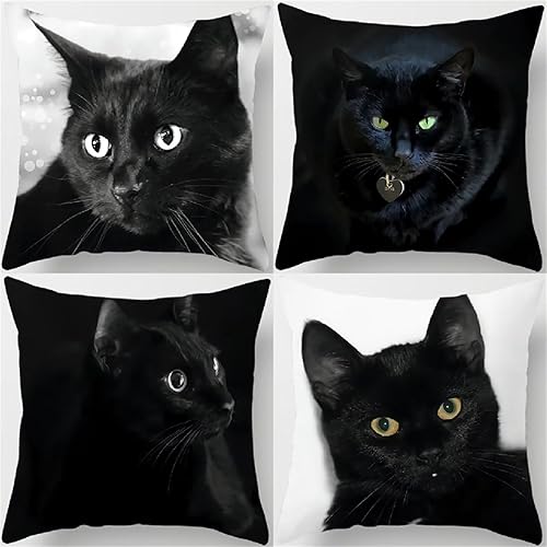 HHQGOUYG Lot de 4 Housse de Coussin d'extérieur 45x45cm, imperméable Décoratif Housses Coussin Le Chat Noir Doux Taie Oreiller de Canapé pour De pour Patio Jardin Salon Chambre Décoration I-3