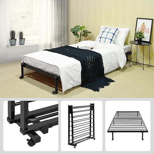 FetiNes Lit Pliant 90x190 cm Lit d'appoint 1 Personne Adulte, Lit d'invité Pliable avec Matelas en Mousse à Mémoire de Forme Haute Résilience de 12 cm, Capacité de Charge 200 kg