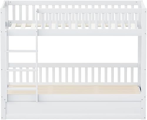 Seyakany Lit superposé Enfant 90x200cm en Bois Massif, lit Coffre avec système de Rangement hydraulique, Cadre de lit Enfant avec sommier, Blanc