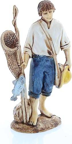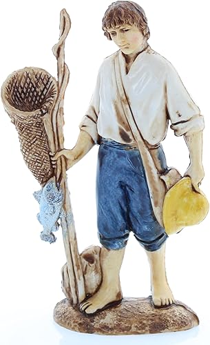 Moranduzzo Pêcheur pour Crèche de 10 Cm Échelle 1:20 - Figurines de Crèche Indestructibles - Style 700', Peinture Finition à la Main, Produit Officiel, Fabriqué en Italie, Sculpteur M. Landi