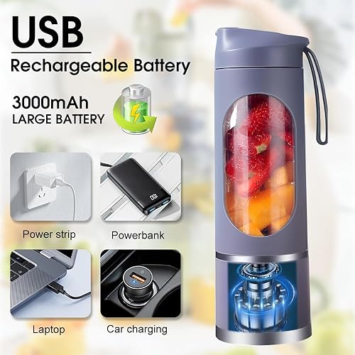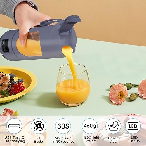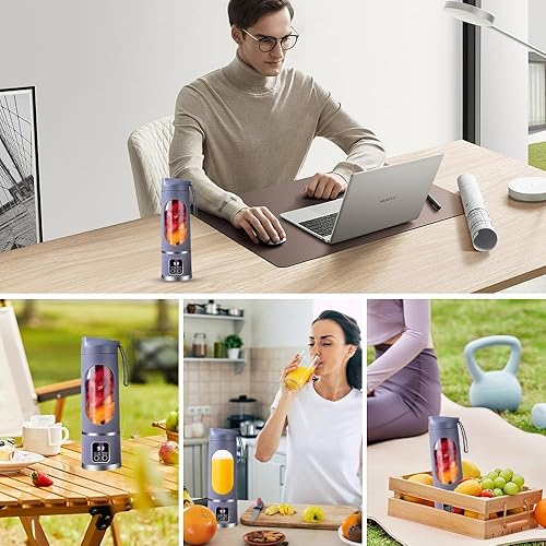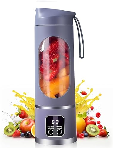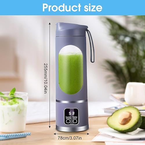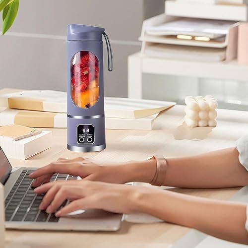 Ubdrud Mixeur portable à 12 lames pour jus et smoothies 450 ml Mini mixeur avec écran LED rechargeable pour la maison, le sport, l'extérieur Violet